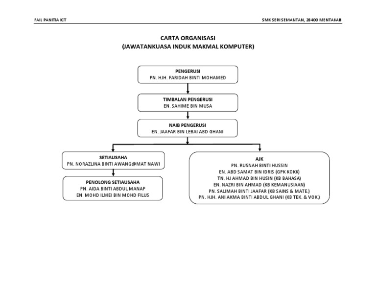 Carta Organisasi Jawatankuasa Makmal Komputer Bilik Ict Pengerusi Gnanasekarn A L Maruthamuthu Guru Besar